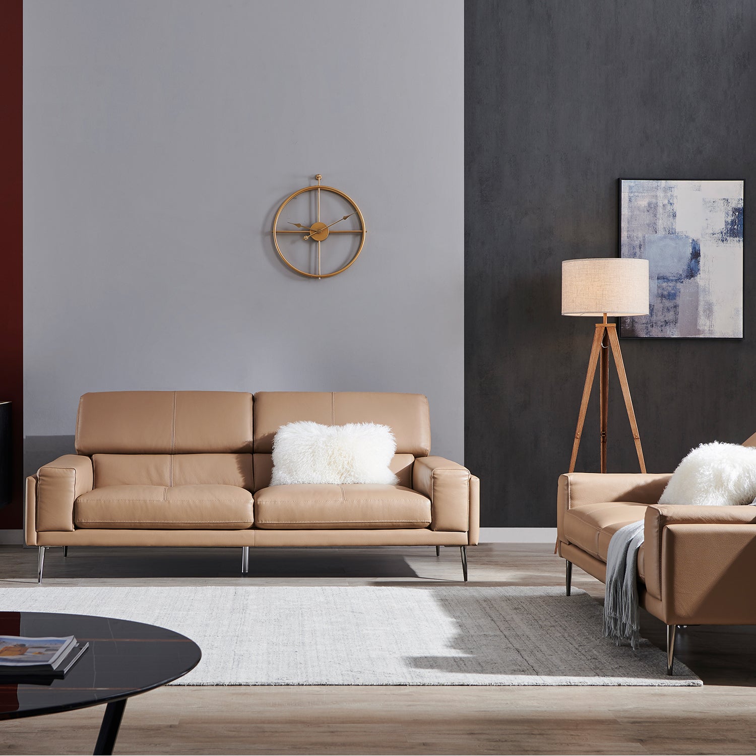A fusion of style and comfort. Give your living room setting a modern contemporary charm with this elegant and luxurious living room sofa. Black metal legs and adjustable headrests make this set perfect for any contemporary living room.