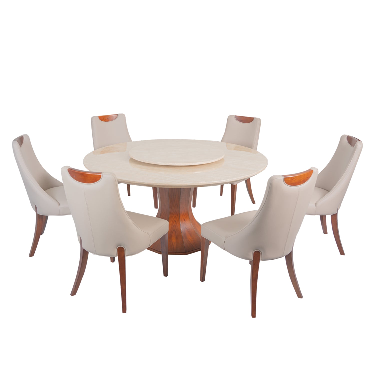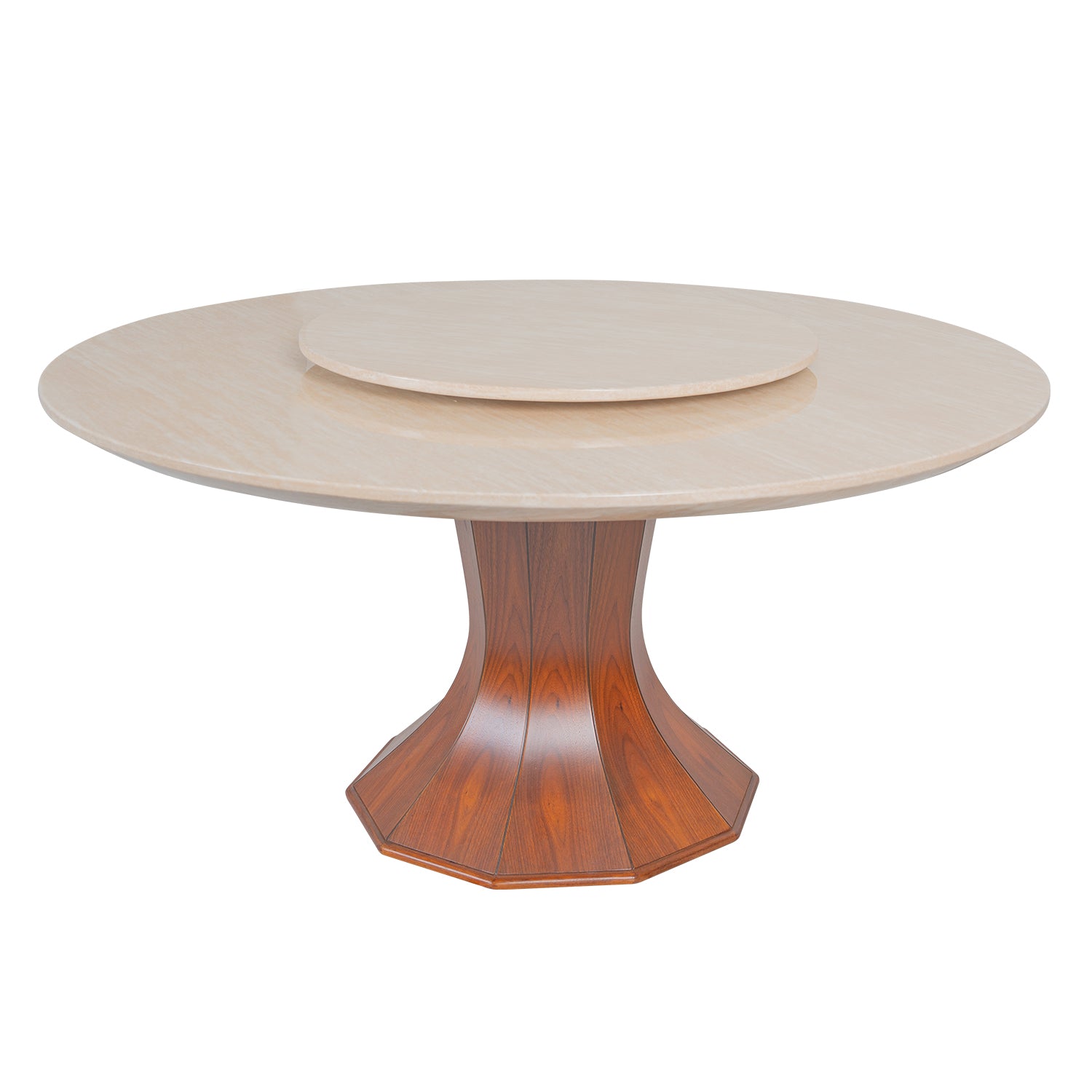 A stunning round dining table. Designed with the social and cultural requirements of the Oriental market in mind, it features a rotating tray positioned on the table top. Convenient rotary design is ideal for banquets, kitchens, dining rooms, etc.