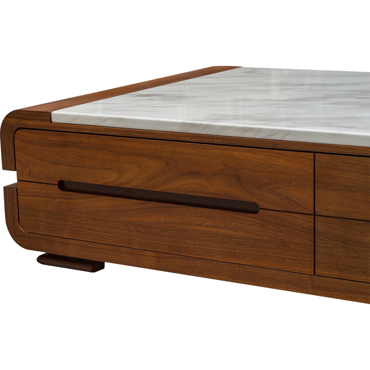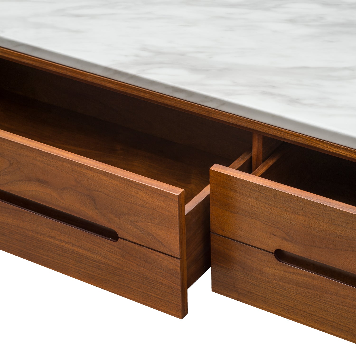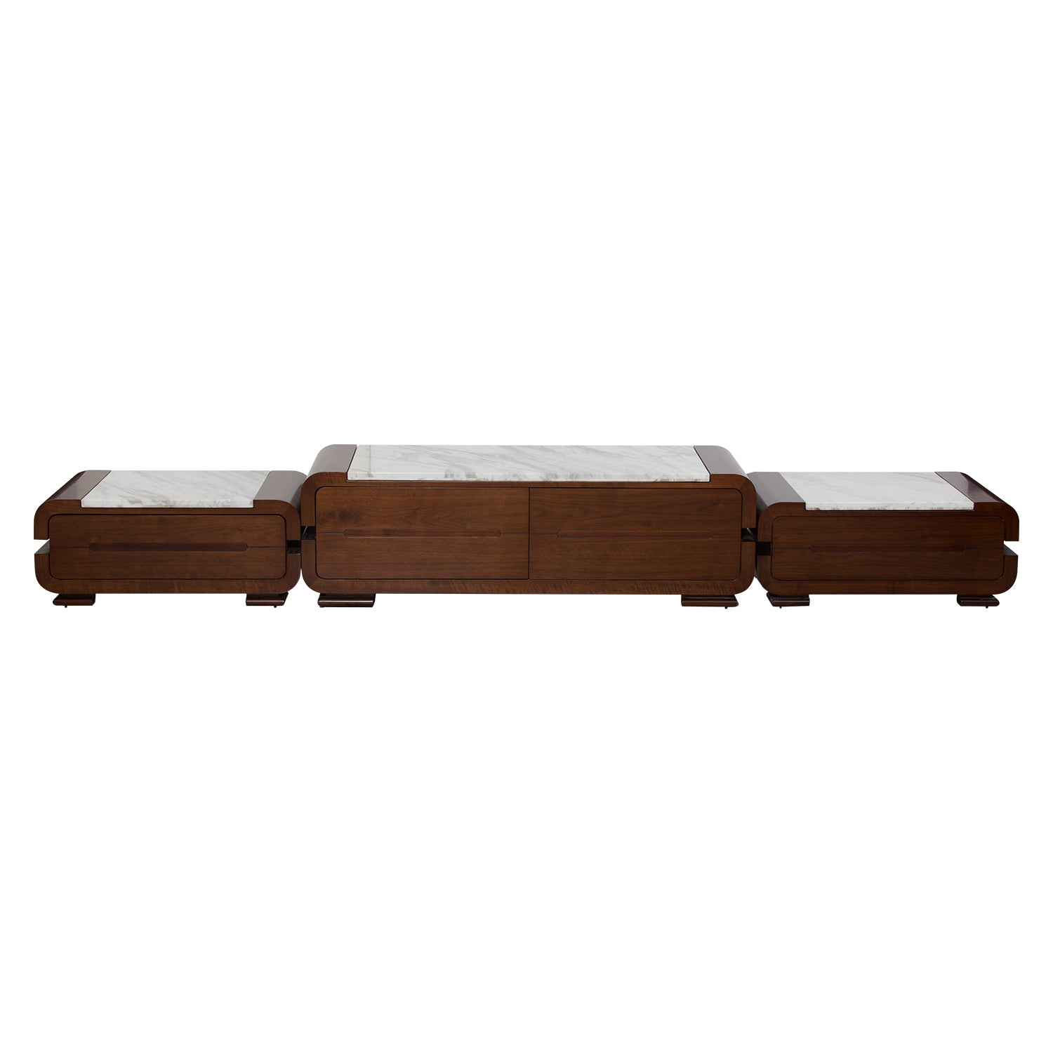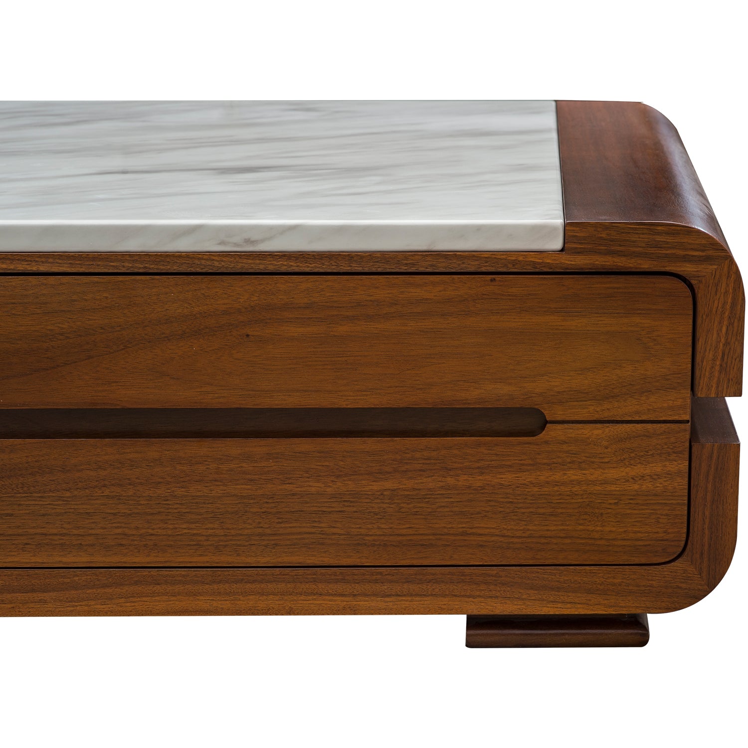 E1级MDF胡桃木饰面+爵士白大理石(胡桃木色)+楸木实木脚