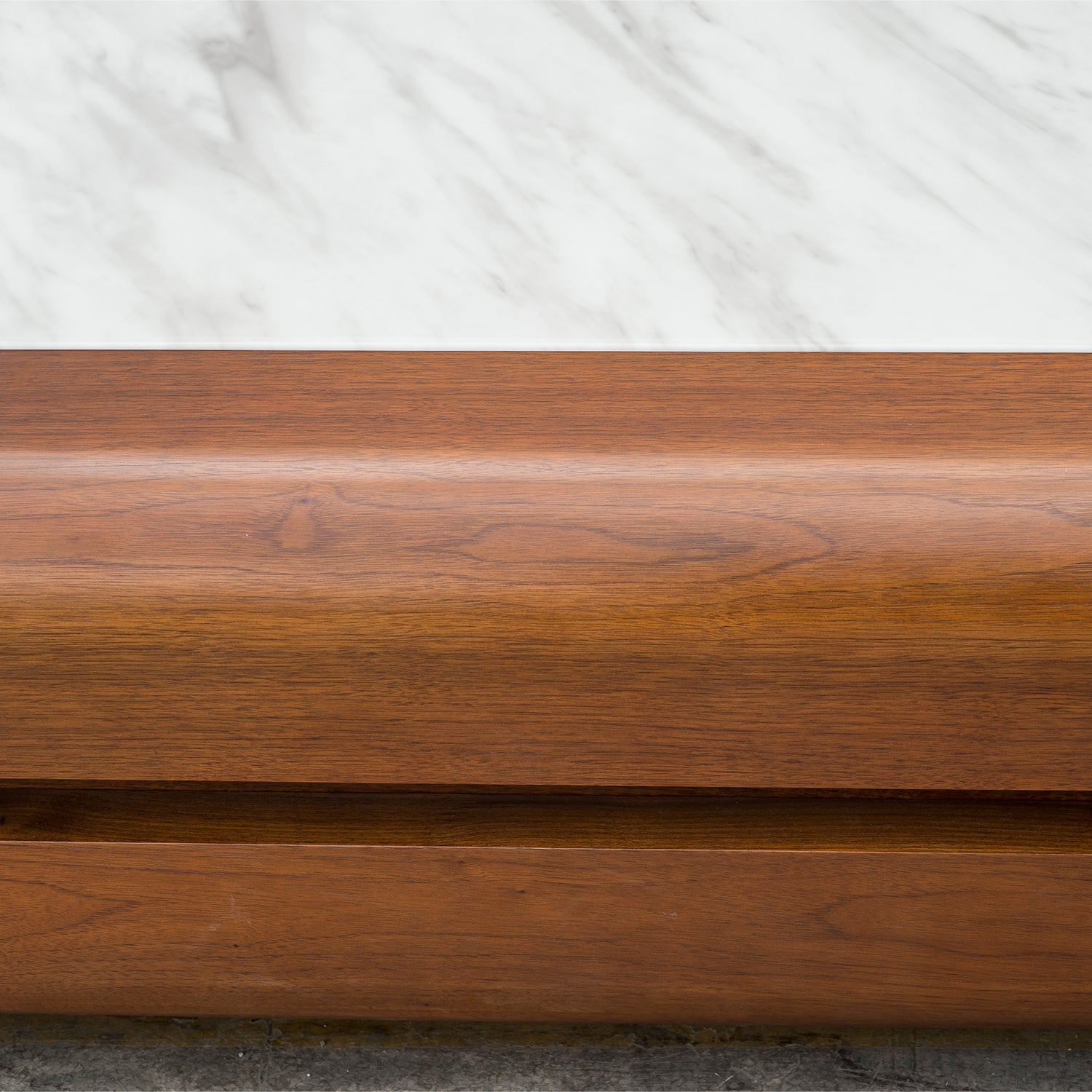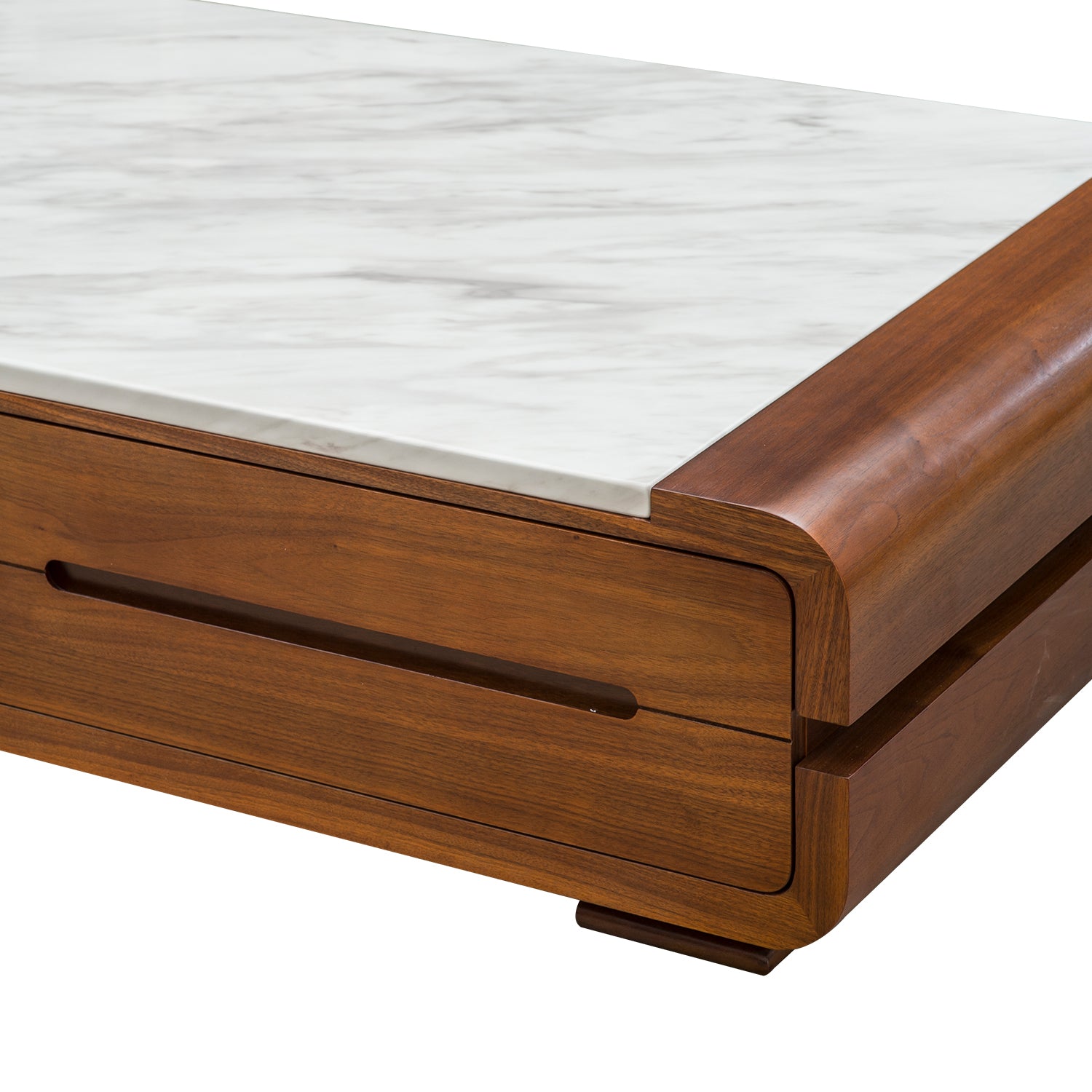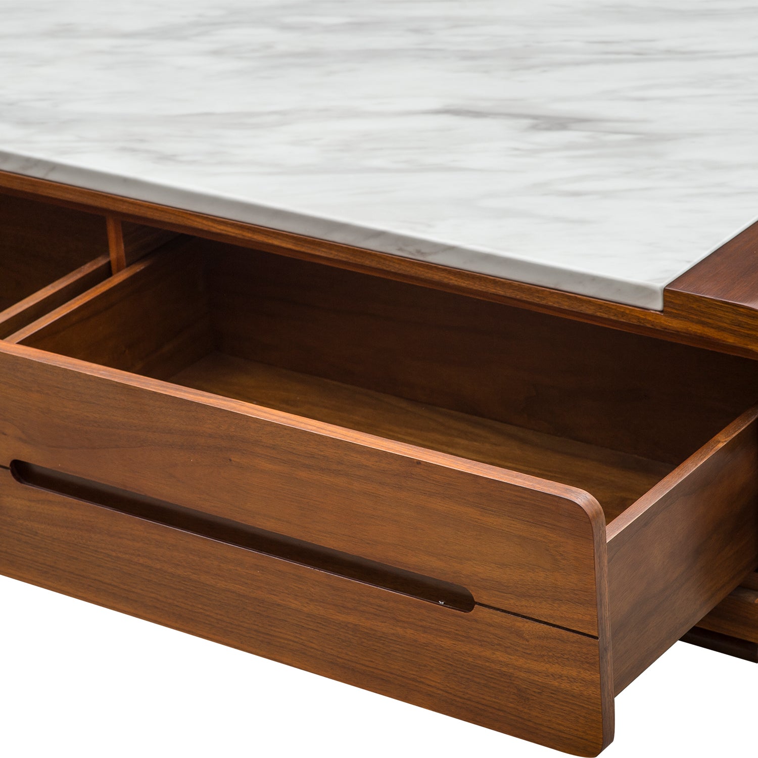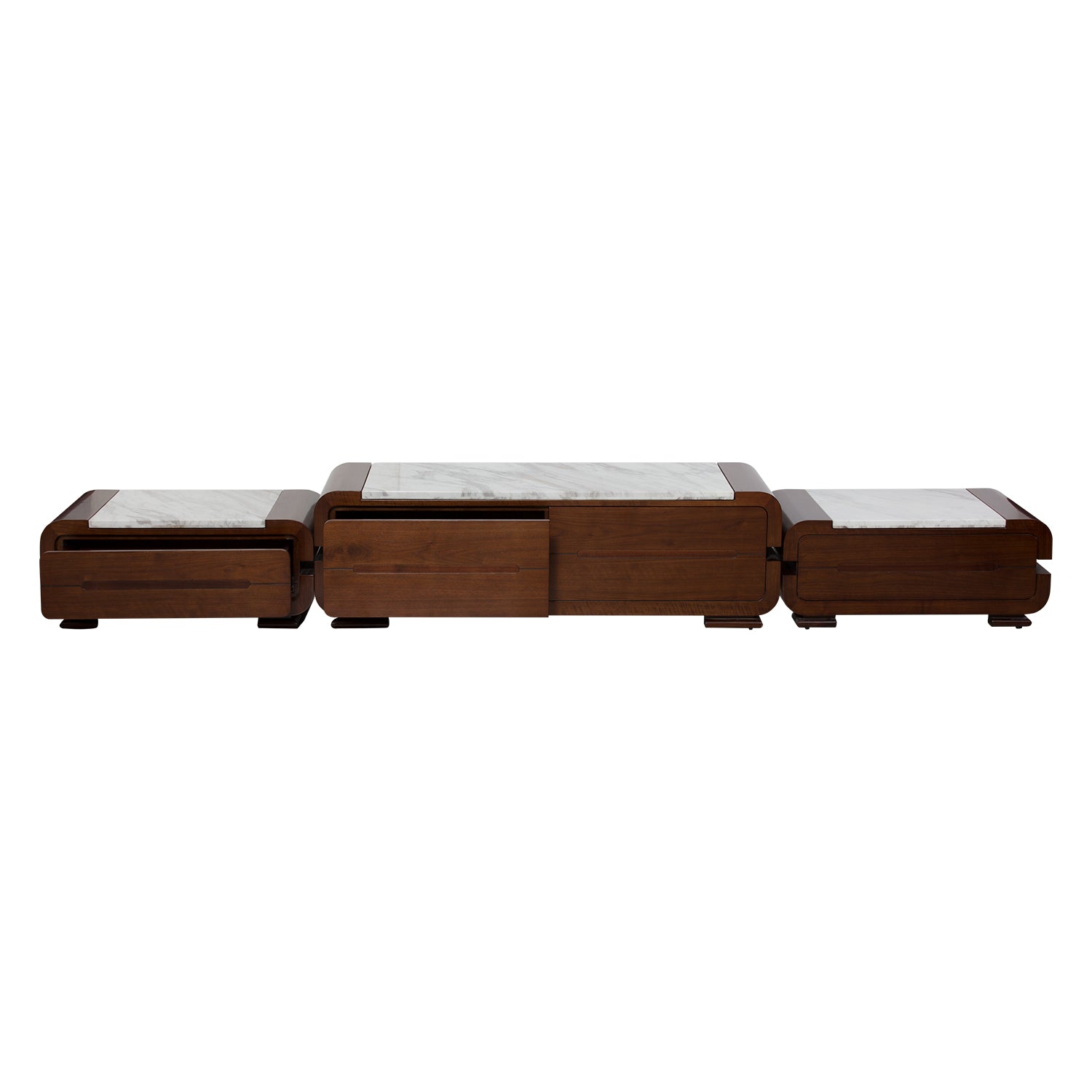 E1级MDF胡桃木饰面+爵士白大理石(胡桃木色)+楸木实木脚