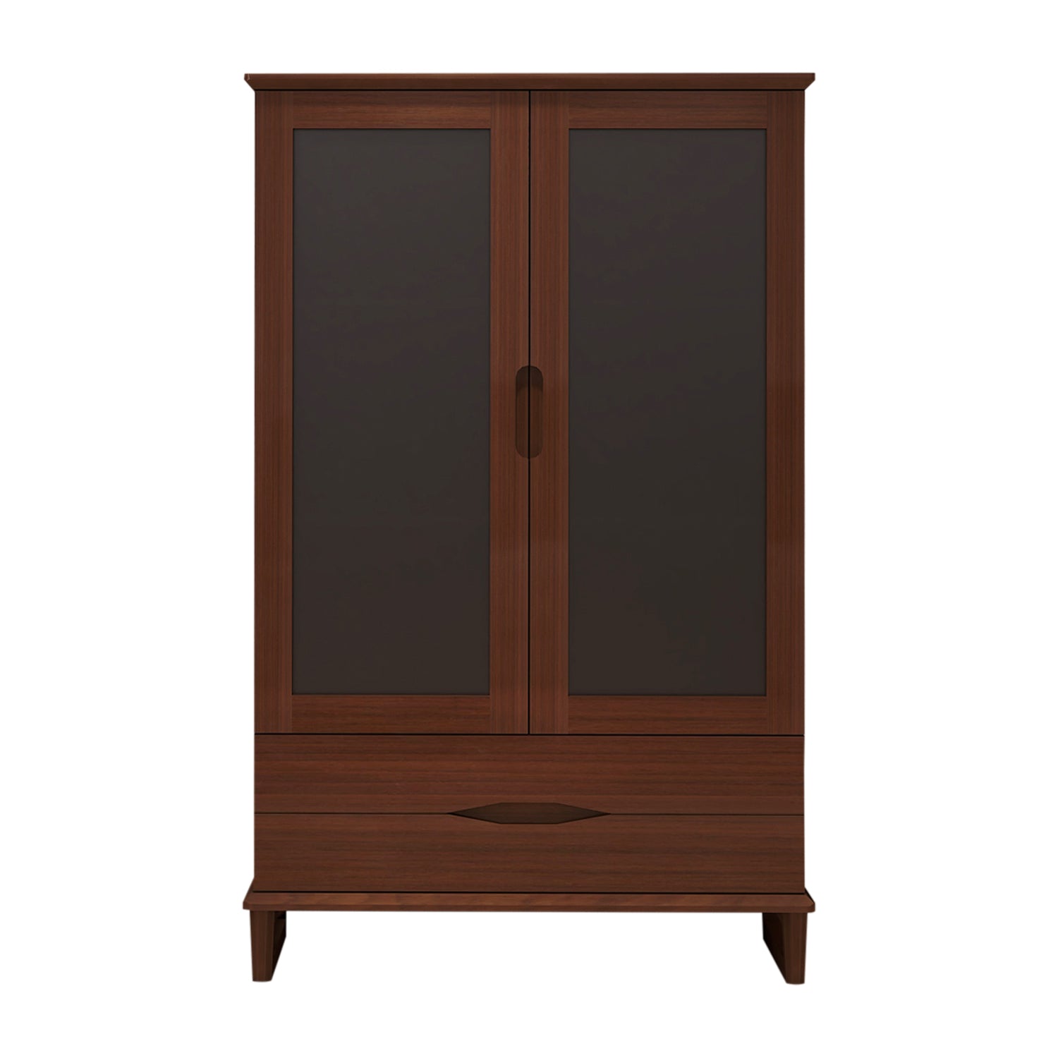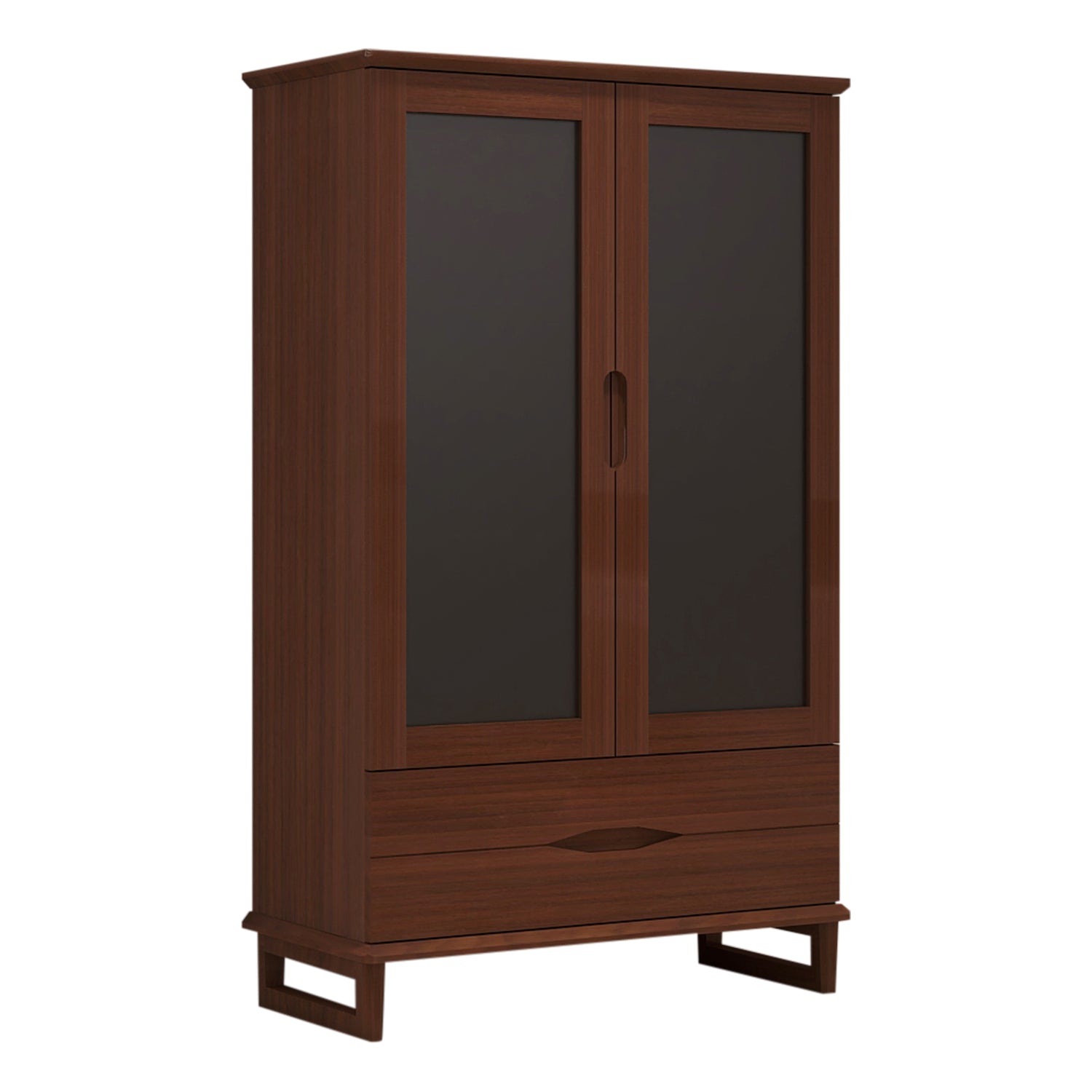 E1级中纤板胡桃木贴面+胡桃木实木脚+钢化玻璃搁板及门(胡桃木色)