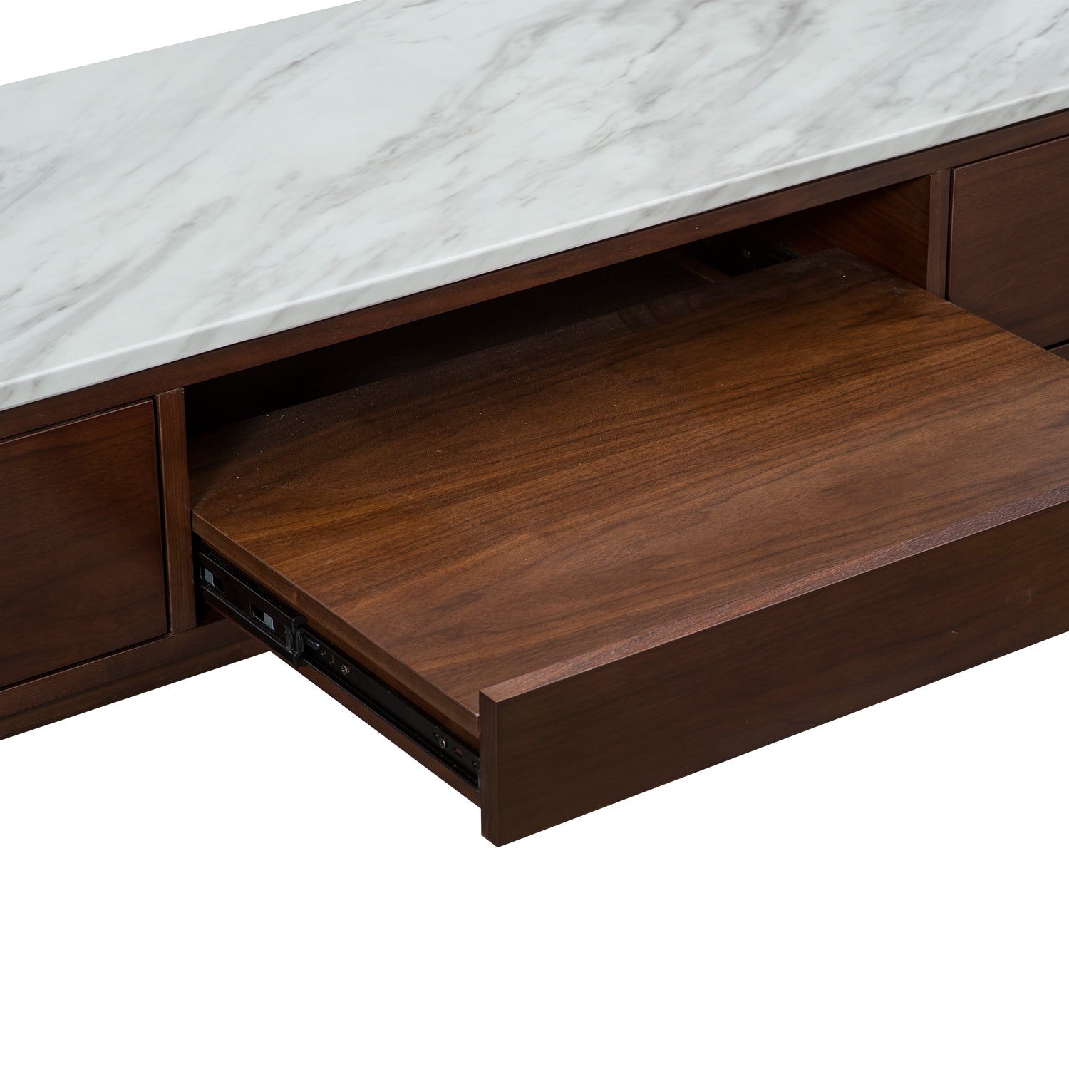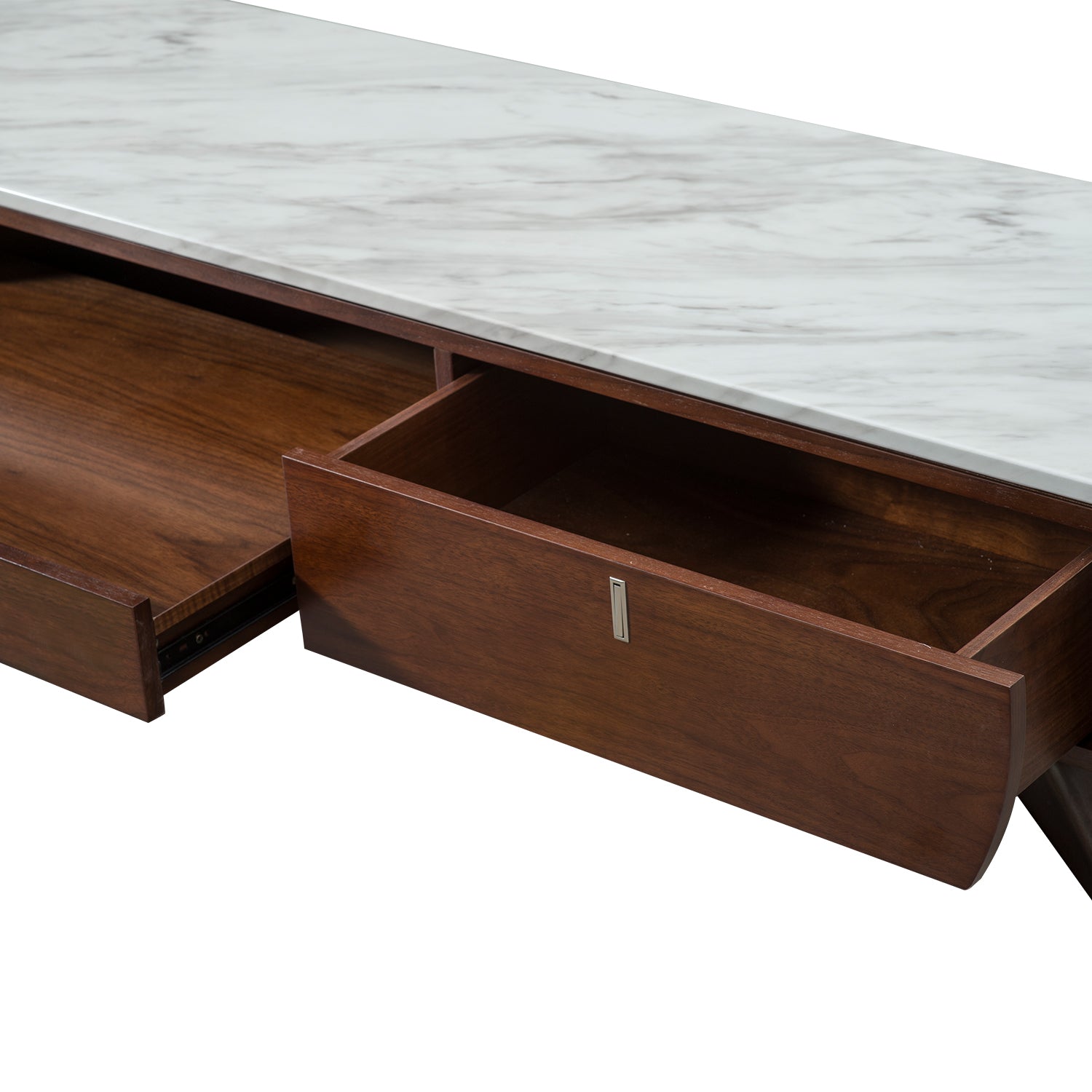E1级MDF配胡桃木贴面+胡桃木实木脚,爵士白大理石(胡桃木色)