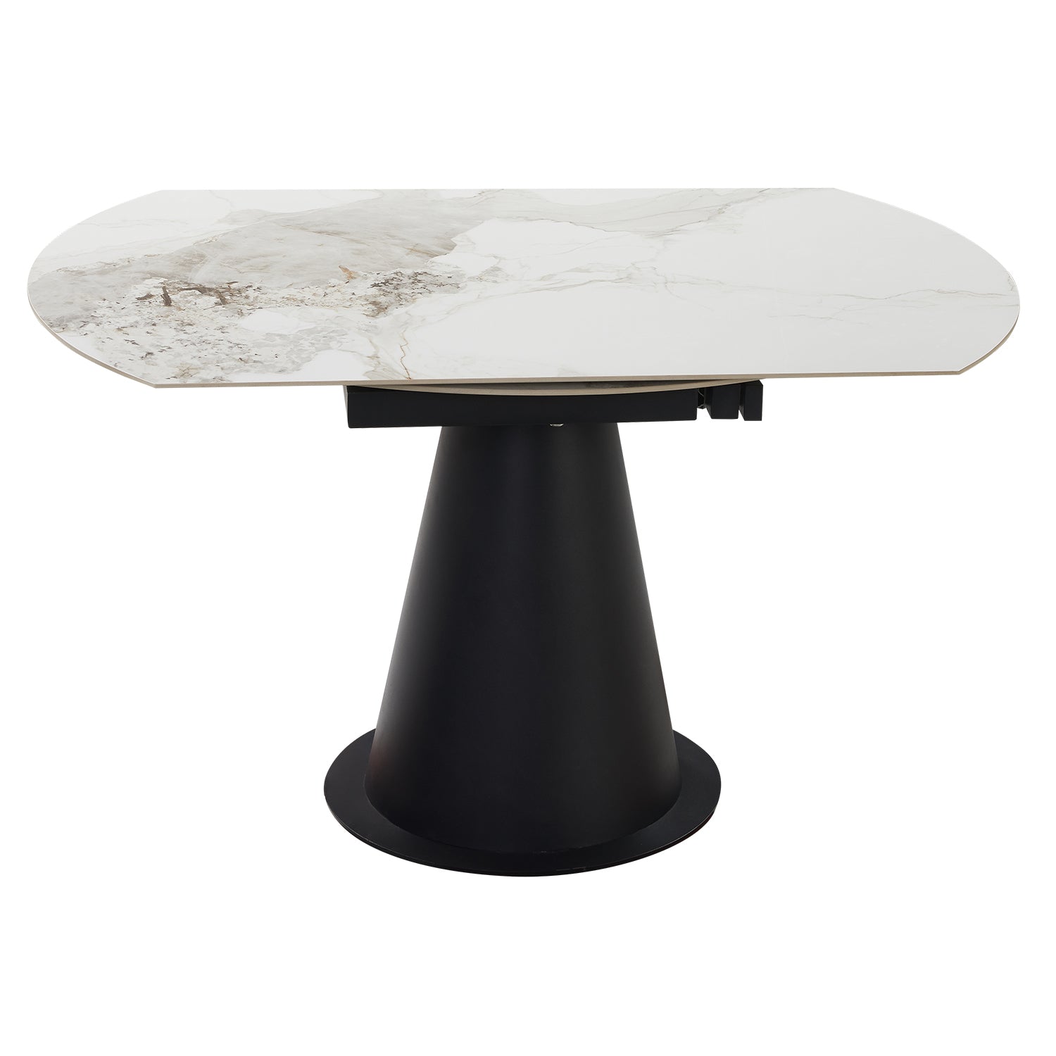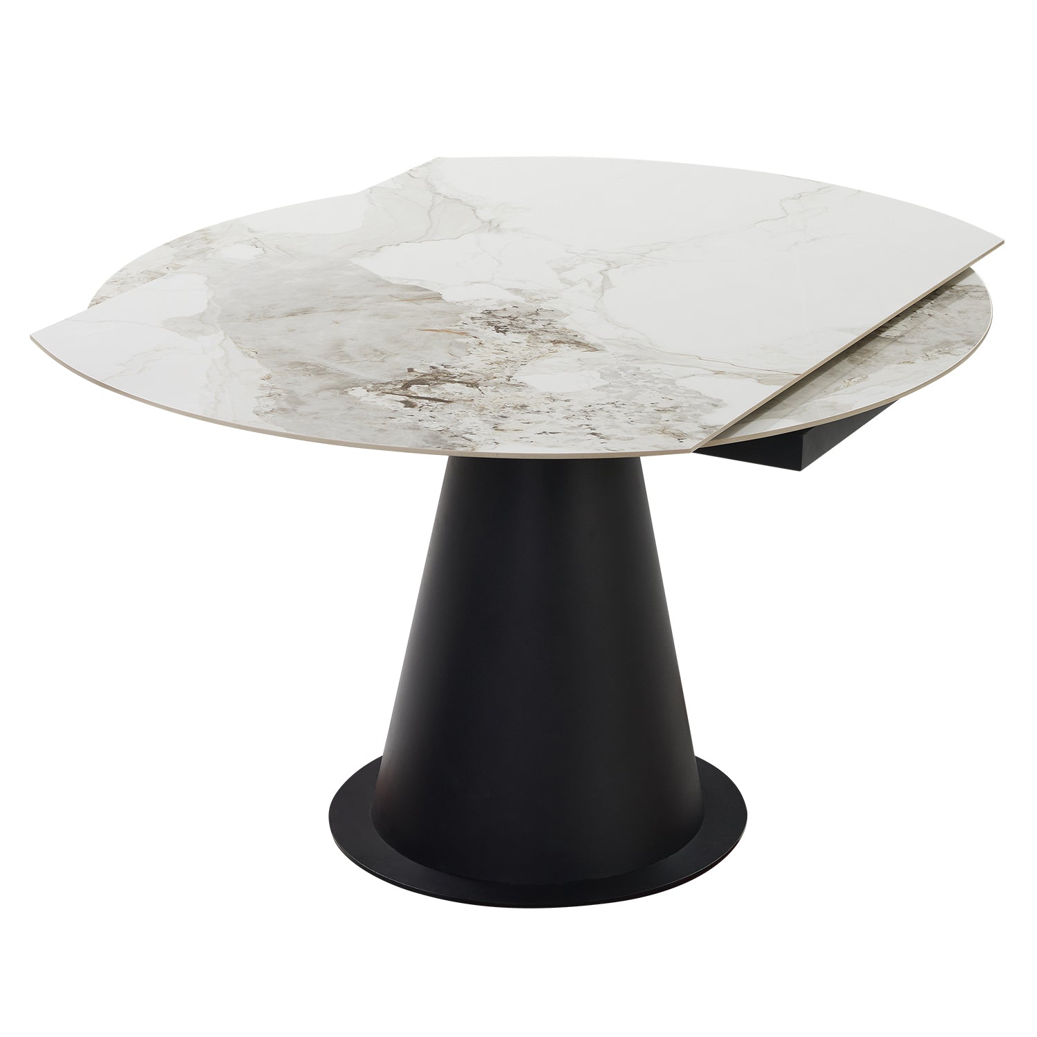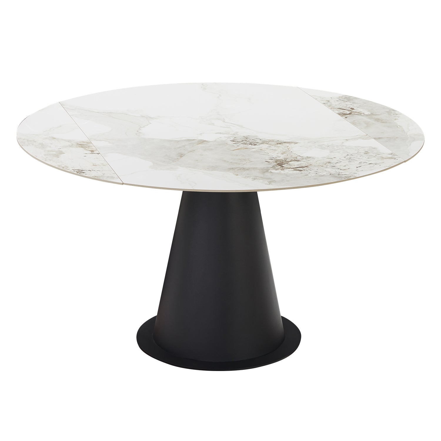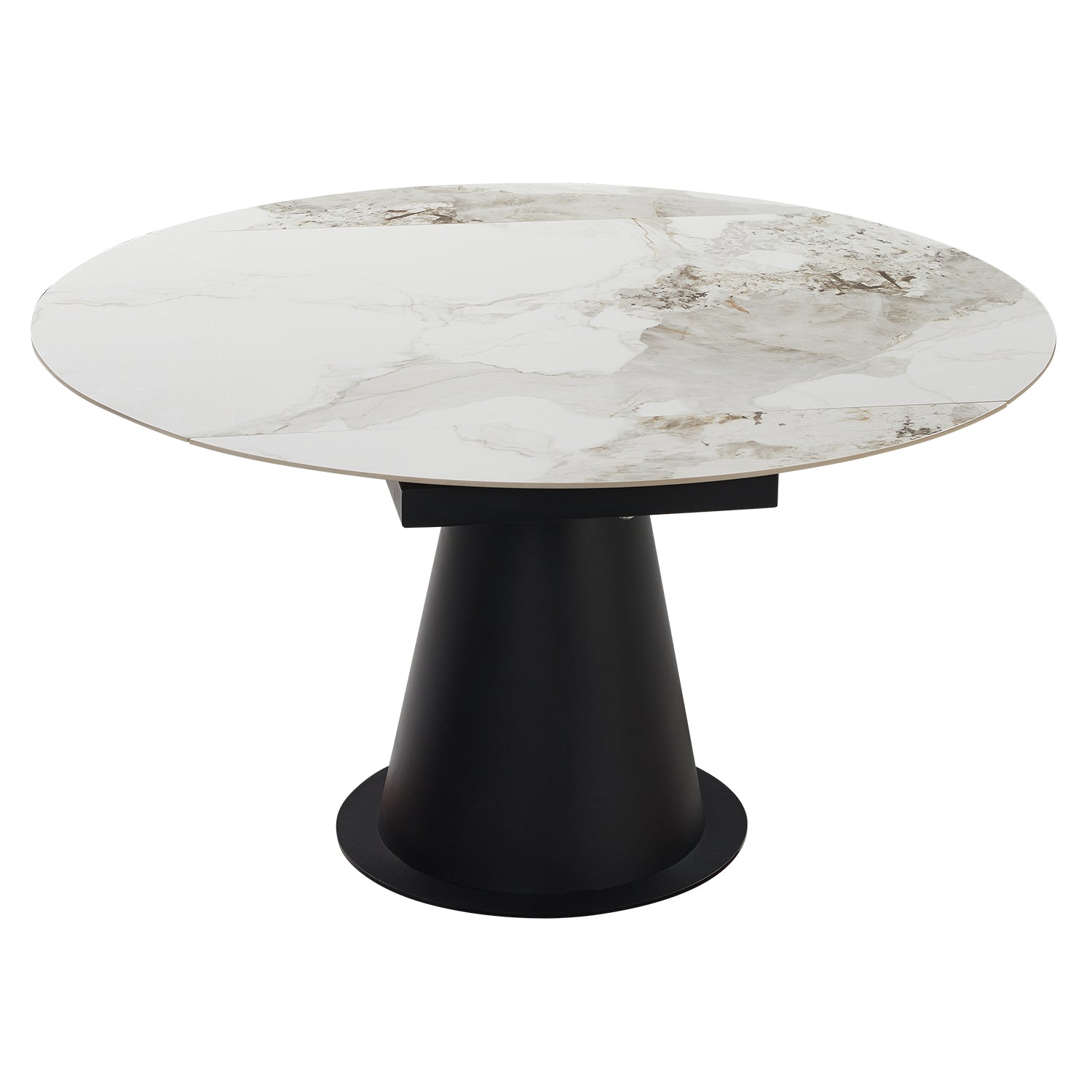 The space-saving extendable dining table seamlessly transitions from round to square, just rotate the table, making it perfect for any space or occasion. Its rock plate surface offers exceptional durability, scratch resistance, and heat resistance.